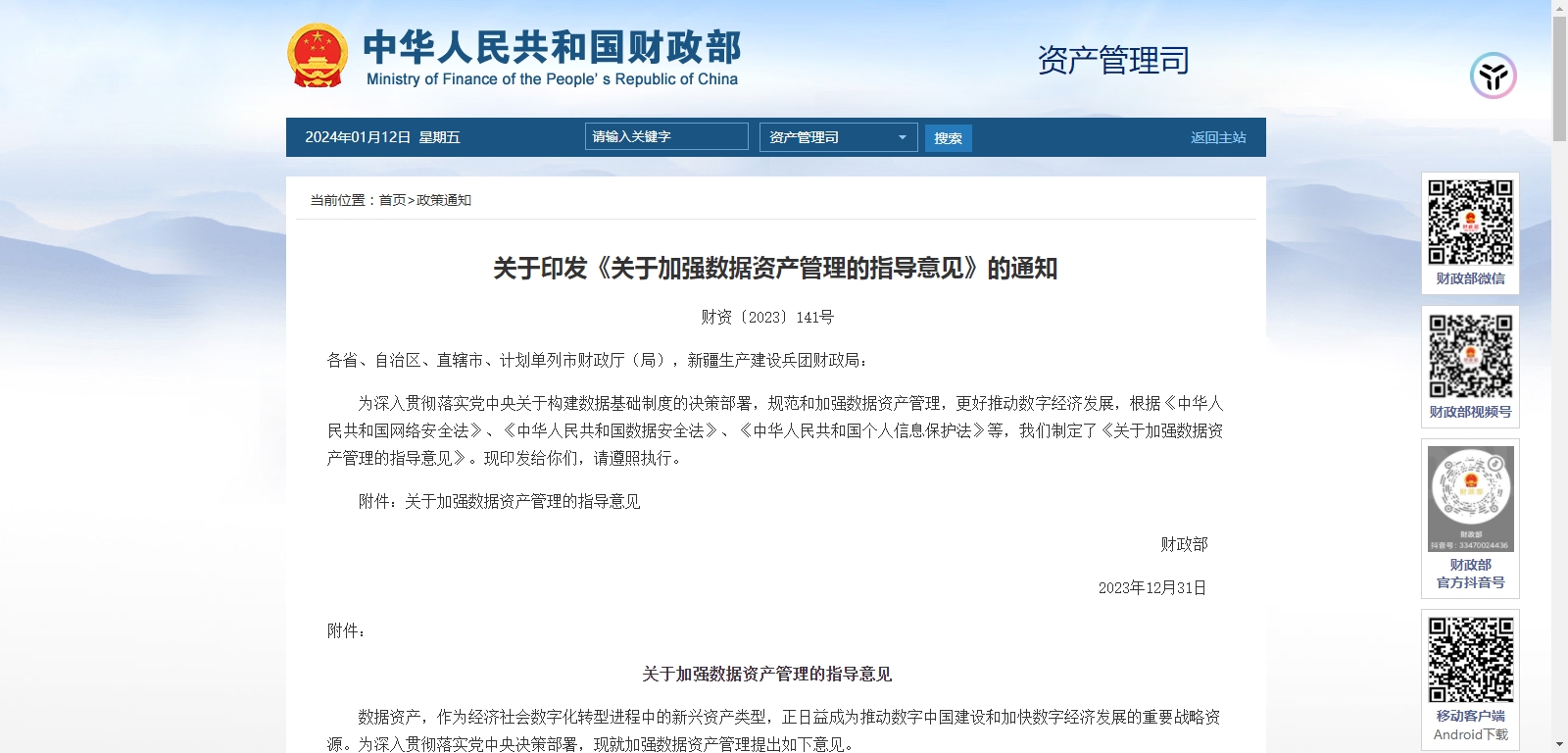ÔöÇ¿Êý¾Ý×ʲúÖÎÀí£¡ÖØÒª·¢ÎÄ ... 2024-1-12 |